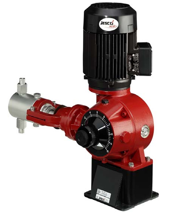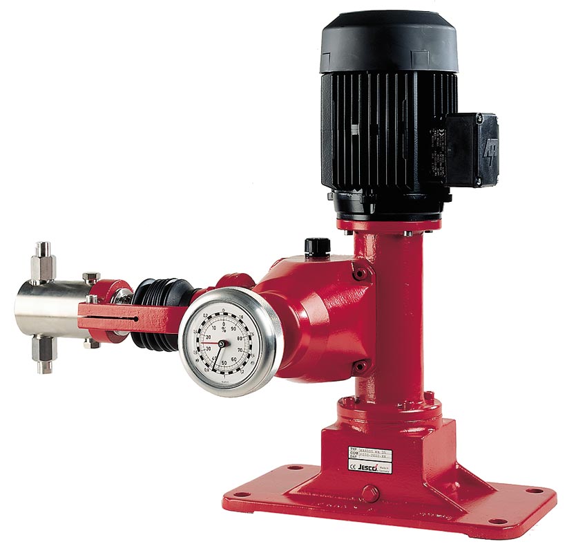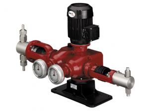 Pompy dozujące tłokowe napędzane silnikiem elektrycznym FEDOS, REKOS, KARDOS o wydajności od 2 do 8000 l/h. Pompy te mogą być konfigurowane jako jedno- i wielogłowicowe (do 12 głowic na jednym napędzie). Ich główna zaleta to bardzo duże ciśnienie wyjściowe (do 400 bar) i wysoka dokładność dozowania. Dodatkowe wyposażenie: licznik impulsów, wentylator dodatkowy. Opcjonalna pompa może mieć wbudowany system KMS (układ tłokowo-membranowy) gwarantujący 100% pewność działania, szczelność oraz ciśnienie wyjściowe do 40 bar. Wykonanie silnika normalne lub EEx. Sterowanie przez zewnętrzny konwerter częstotliwości umożliwia połączenie pompy z każdym układem automatyki wykorzystującym sygnał standardowy.